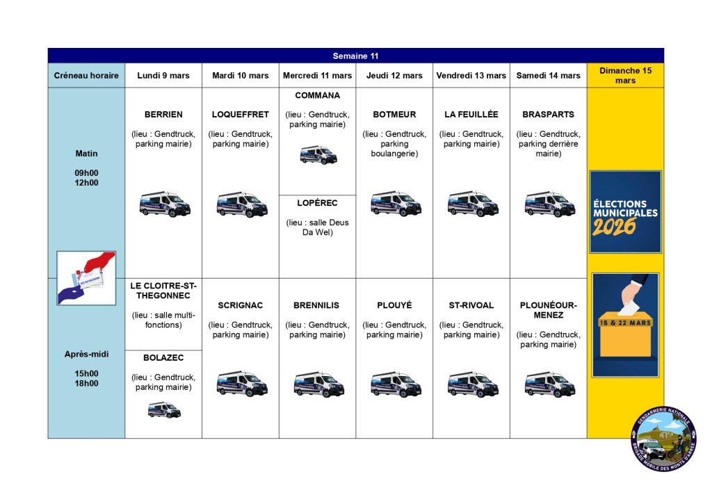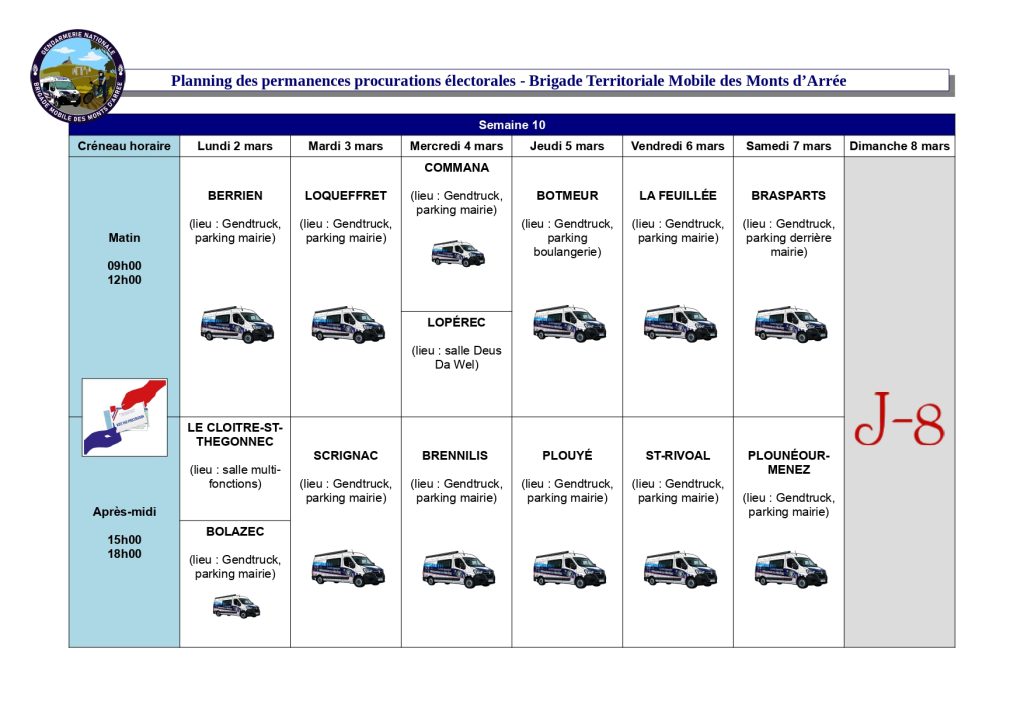 Planning des permanences procurations électorales assurées par la Brigade mobile des Monts d’Arrée